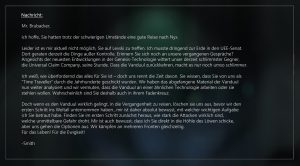 Genau ein Jahr ist es her, dass Husky und ich zum ersten Mal nach Pyro aufbrachen. Eins hat seitdem zum nächsten geführt – fast zwangsläufig, wie es scheint. Was haben wir seitdem nicht alles erlebt… und jetzt: Die Rückkehr der Vanduul. Die ominöse Nachricht, die meinen endgültigen Tod fordert. Smith seltsame „Schwerter der Zeit“…