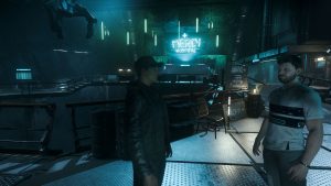 „Ah, richtig…also…Alaska, Zero und ich hatten Leute aus Lorville rausgeschmuggelt, die dort von Hurston Dynamics verfolgt wurden und haben sie nach Levski gebracht…das war, bevor wir uns wiedergetroffen haben. Marrick ist ein alter Freund von mir.“