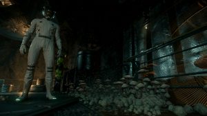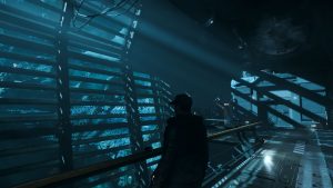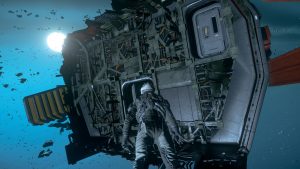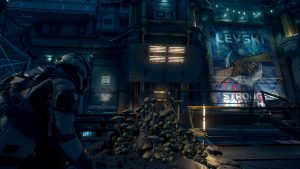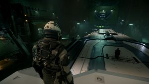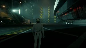 Ich setze den Helm auf, die Luft entweicht aus der Schleuse und ich betrete das Äußere Levskis. Ich gehe ein paar Schritte und sauge tief die Luft in meinem Raumanzug ein, als würde ich auf Microtech in luftiger Höhe eine kühle Abendbrise genießen – und nicht mitten in einem riesigen heruntergekommenen Industriekomplex in einem umkämpften Sternensystem stehen.