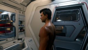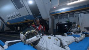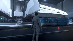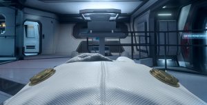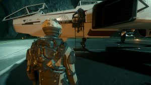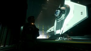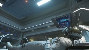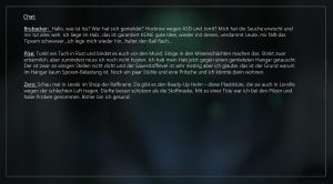Er macht sich auf Huskys Schiff bereits eine Koje klar. Ein Lächeln huscht mir über das Gesicht. Wir hatten echt gute zwei Wochen. Biken, abhängen, quatschen – und viel schlafen. Ich habe versucht, alles einfach zu verdrängen. Selbst die Vanduul mussten sich gedulden. Natürlich waren sie dennoch stets in meinem Hinterkopf – und doch: Das habe ich, das haben wir gebraucht. Nachdem Husky uns und zwei Bikes ins Tobin Valley gebracht hatte, hatte er kehrt gemacht, damit Garnsky letzte Vorbereitungen an der „Frost“ für unsere große Reise treffen konnte. Irgendetwas wollte der grummelige Mechaniker noch unbedingt einbauen.