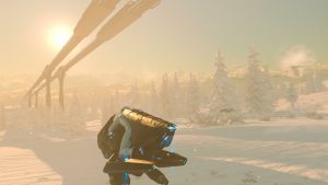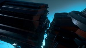 Kaum haben wir den Planeten erreicht, der wie eh und je türkisblau unter uns schimmert, weiß ich auch wieder, was ich an Pyro so faszinierend finde: seine unglaubliche Schönheit. Im Formationsflug fliegen wir mit unseren Schiffen hinab zum Naturschauspiel. Es ist ein schöner, genüsslicher Anflug und beide sind wir für ein paar Augenblicke still. Jeder genießt es für sich. In Pyro bekommt man eben nur beide Seiten der Medaille. Schließlich müssen wir jedoch entdecken, dass es sich bei den Steinbögen nicht um ein reines Naturschauspiel handelt. Vielmehr haben die Headhunter einen Outpost dazwischen gebaut.