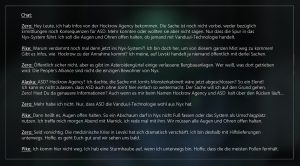Dann erzähle ich Husky alles, was ich weiß. Er hört still zu. Ich mag mich selbst kaum reden hören und  während ich spreche, kommt es mir absurd vor, was mir Smith aufgetischt hat. Gleichwohl: Die Vanduul sind real, nicht nur eine Fata Morgana und was wir im ASD-Abgrund gesehen und erlebt haben, war auch keine kollektive Wahnvorstellung. Warum sollte also nicht auch alles andere stimmen?