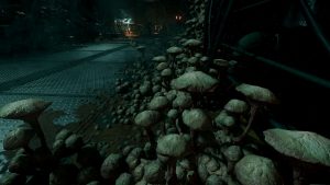 Nicht mehr lange und ich werde auf leibhaftige Vanduul treffen. Auf eine gewisse Weise und tief im Innern weiß ich, dass mein gesamtes Schicksal direkt mit ihnen verknüpft ist. Ich atme erneut durch und laufe los, ein kleiner Abendspaziergang. Ich gehe ein paar Stufen hinunter und stutze: Direkt vor mir wächst eine Pilzkolonie. Ich knie mich hin und untersuche sie. Es sind die gleichen Pilze, die auch in der Station wachsen. Sporen überleben schon mal im freien Weltall, aber ausgewachsene Pilze brauchen Sauerstoff zum Wachsen und Gedeihen – wie ist das möglich?