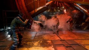 Alaska sitzt im Backbord-Turret, Pike hat den unteren Turm des Schiffes besetzt. Wie beim ersten Mal treffen wir bei den ersten beiden Checkpoints  auf keine Feinde – und mir schwant plötzlich Böses: Der erste Kontakt mit den Piraten war nur noch ein zurückgelassener Sicherungstrupp – jetzt, nachdem sie wissen, dass wir hinter ihnen her sind, formieren sie sich, um vereint zuzuschlagen.