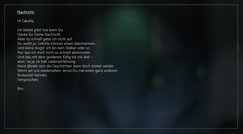 Ich schreibe unterdessen eine Nachricht an Cäcilia.