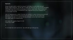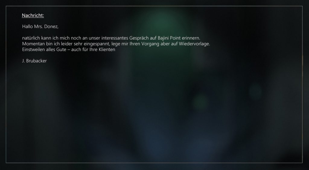 Ich gehe ein paar Schritte zum nächsten Ausrüstungsterminal, als ich Friedrichs Stimme im Ohr habe.