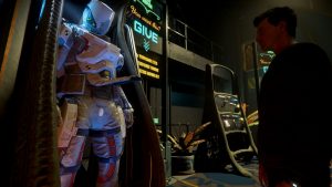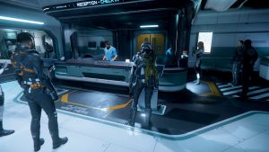 Wir verlassen den Mannschaftsraum, Husky lädt eine Transportkiste mit seinen Habseligkeiten auf die Station um, sodass wir sie dann in die „Shack One“ bugsieren können. Gemeinsam klappern wir die Shops der Station ab, kaufen dies und jenes – Verpflegung, ein paar Klamotten, mehrere Multitools und was man noch so brauchen könnte. Danach machen wir uns noch einmal auf den Weg nach ArcCorp, wo ich meinen persönlichen Kram gelagert habe.