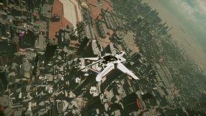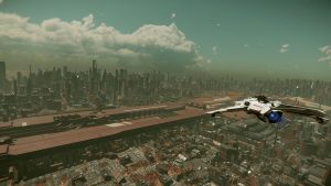 Ich gehe tiefer in meiner Anvil Superhornet MK I, dem fliegenden Panzer wie es heißt, genau die richtige Antwort auf die Vanduul. Dann steige ich wieder höher, überfliege den Spaceport, die Hochhäuser, den IO North Tower, zwinge die Maschine zwischen die Schluchten – und nehme innerlich Abschied.